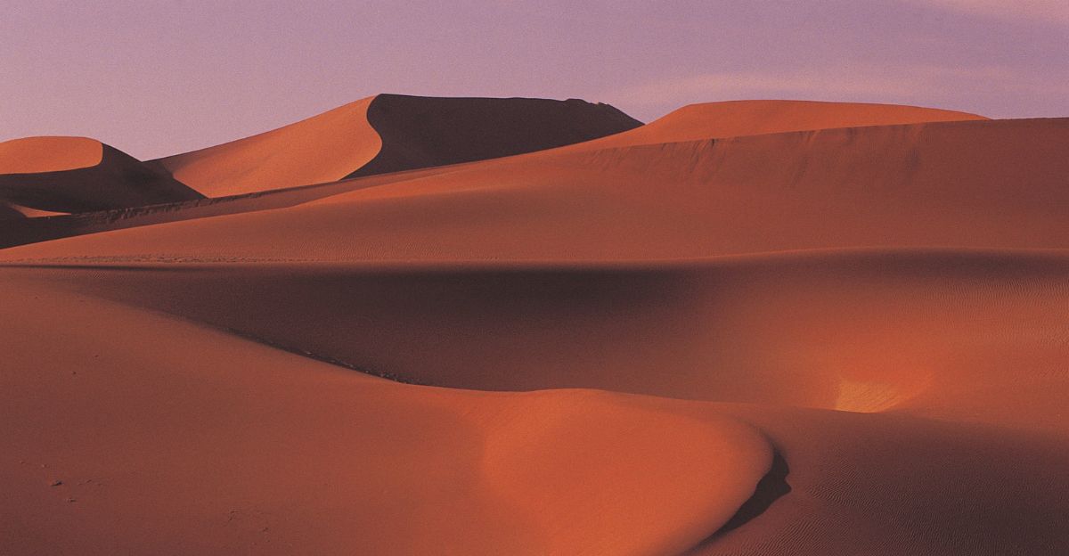 The bright red dunes of Sossusvlei in Namibia are some of the tallest in the world. Long ago, this area was at the bottom of a sea.