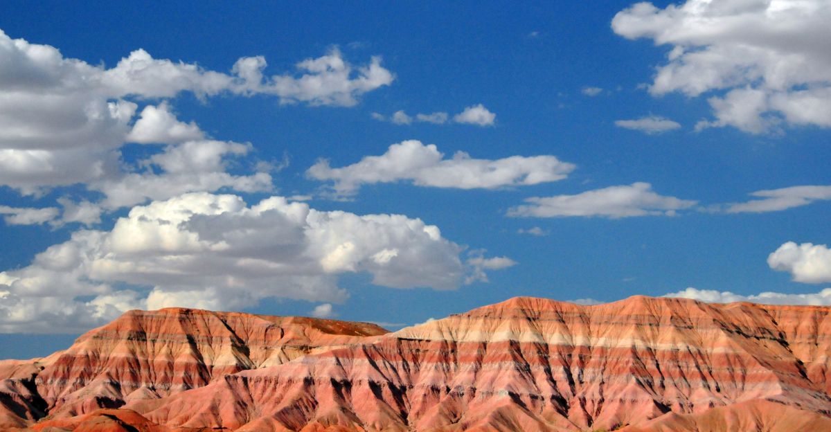 These colors formed over millions of years as rivers, lakes, and shallow seas left behind mud, sand, and volcanic ash. Later, wind and rain wore away the surface to reveal these beautiful layers.