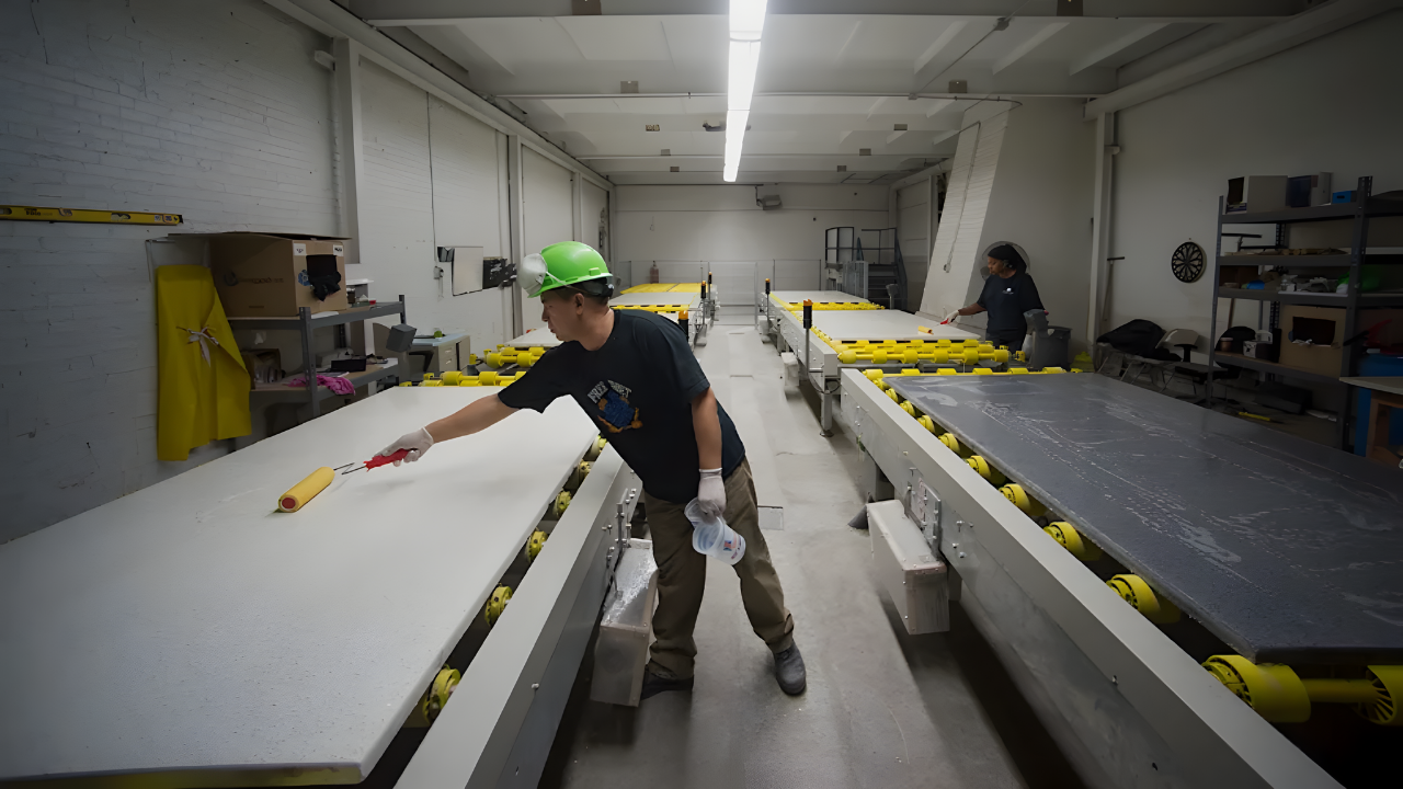 Engineered stone countertops mix crushed quartz and other stones with resins and colors. The final slabs hold over 90% crystalline silica, about twice as much as regular granite. When workers dry-cut, grind, or polish these slabs, they create very fine dust. This dust gets deep into the lungs when breathed in, and the body cannot remove it. Over years, it causes swelling and scars that shrink lung space.