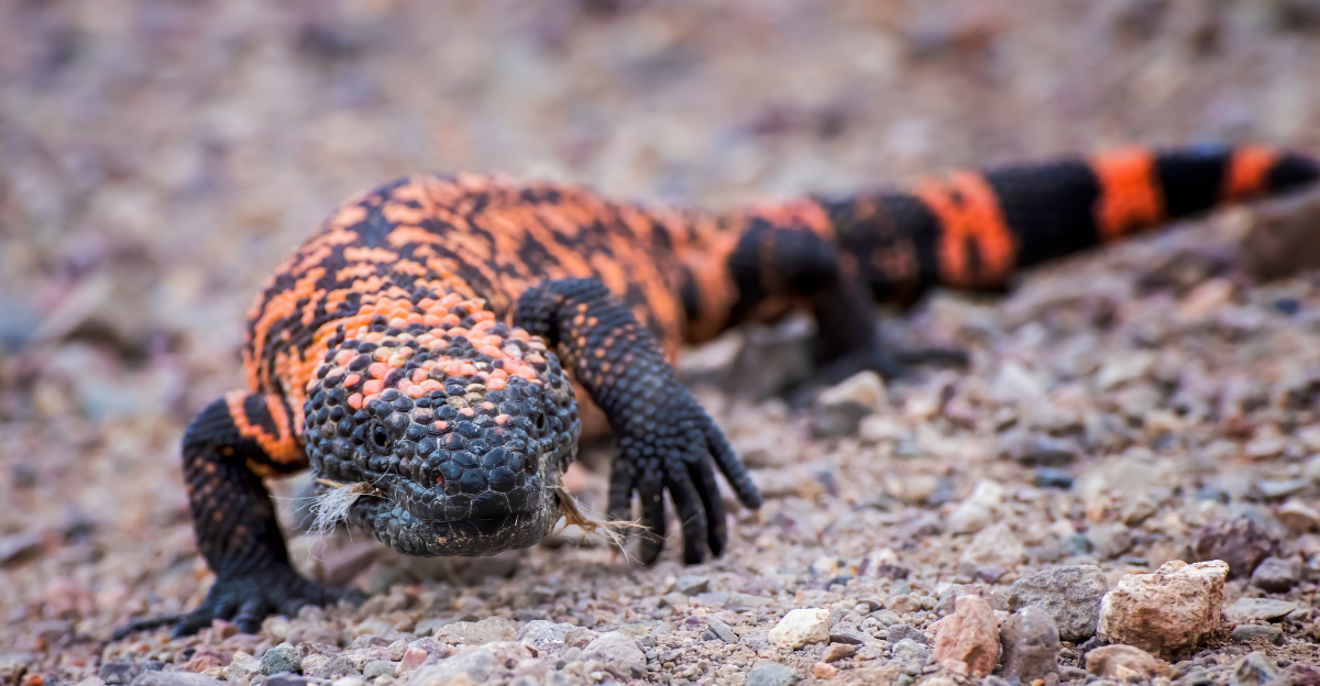 Gila monsters are one of the few venomous lizards in the United States and deliver a prolonged, painful bite that can cause significant local and systemic symptoms. Their venom causes intense pain at the bite site and can produce systemic effects like numbness, weakness, and difficulty breathing.