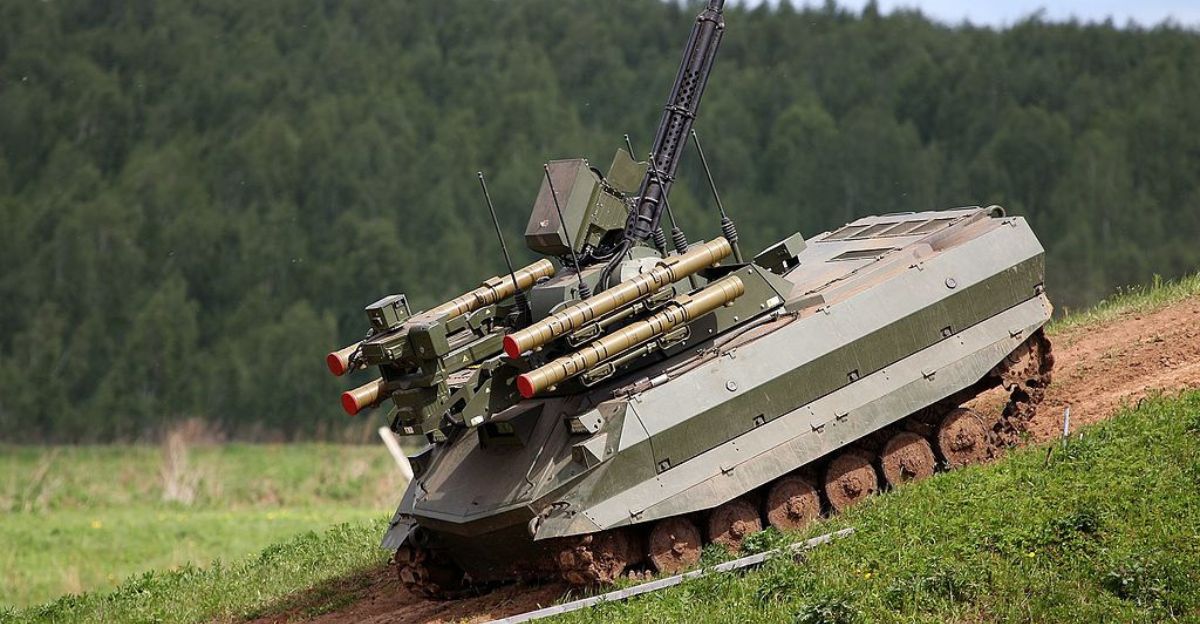 Feniks also neutralized a ground robotic system, highlighting robot-on-robot combat. Ukraine aims to deploy 15,000 ground robots by late 2025, while Russia uses armed Courier vehicles and Uran-6 deminers.