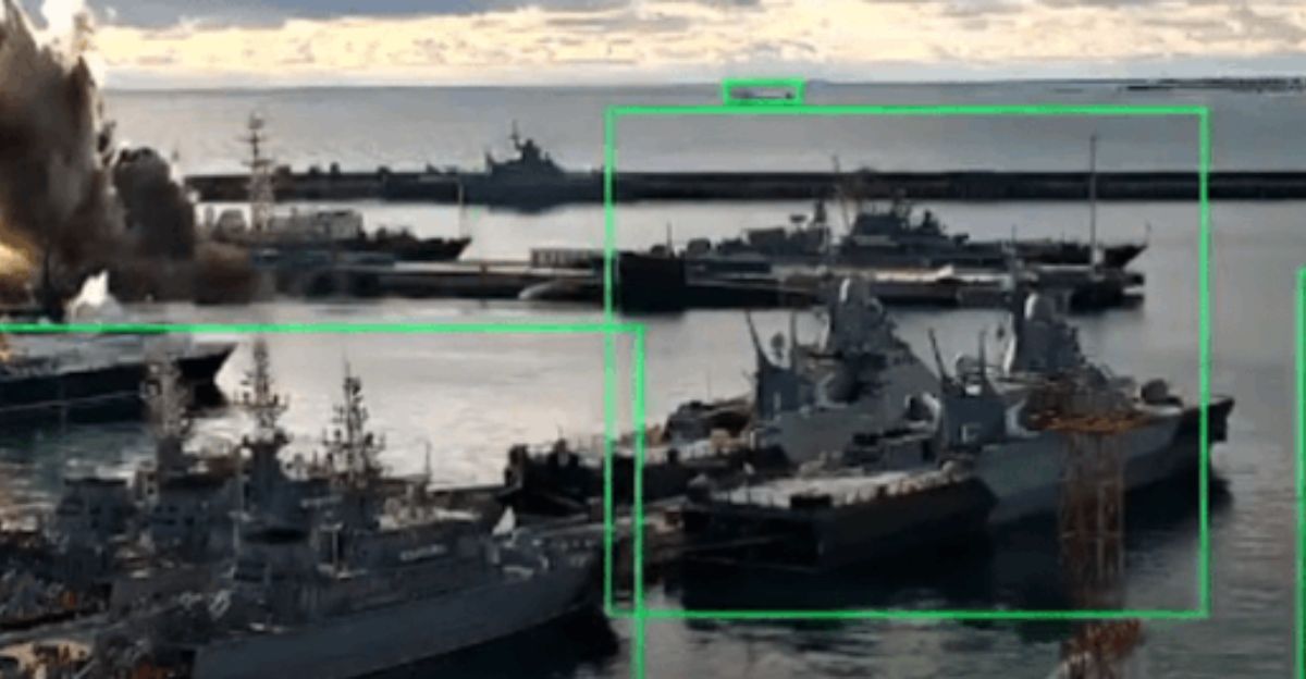 Ukraine’s Security Service sent out several Sub Sea Baby underwater drones for the mission. These uncrewed vehicles guided themselves through the narrow harbor paths using built-in navigation points. One drone exploded close to the back end of a Project 636.3 Kilo-class submarine tied up at the dock. The blast broke the concrete pier and let water flood into the submarine. The Security Service released video of the explosion’s effects, and Reuters confirmed its authenticity.